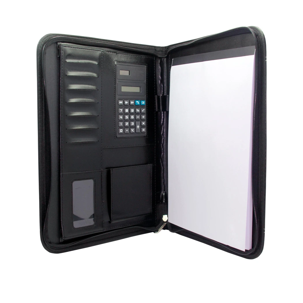 Contiene:Calculadora,Tarjetero con Ventana de PVC,7 Bolsillos Tarjeteros, Portablock, Rulo Porta Bolígrafo, Bolsillo interno grande,block de Hojas y cierre Perimetral.